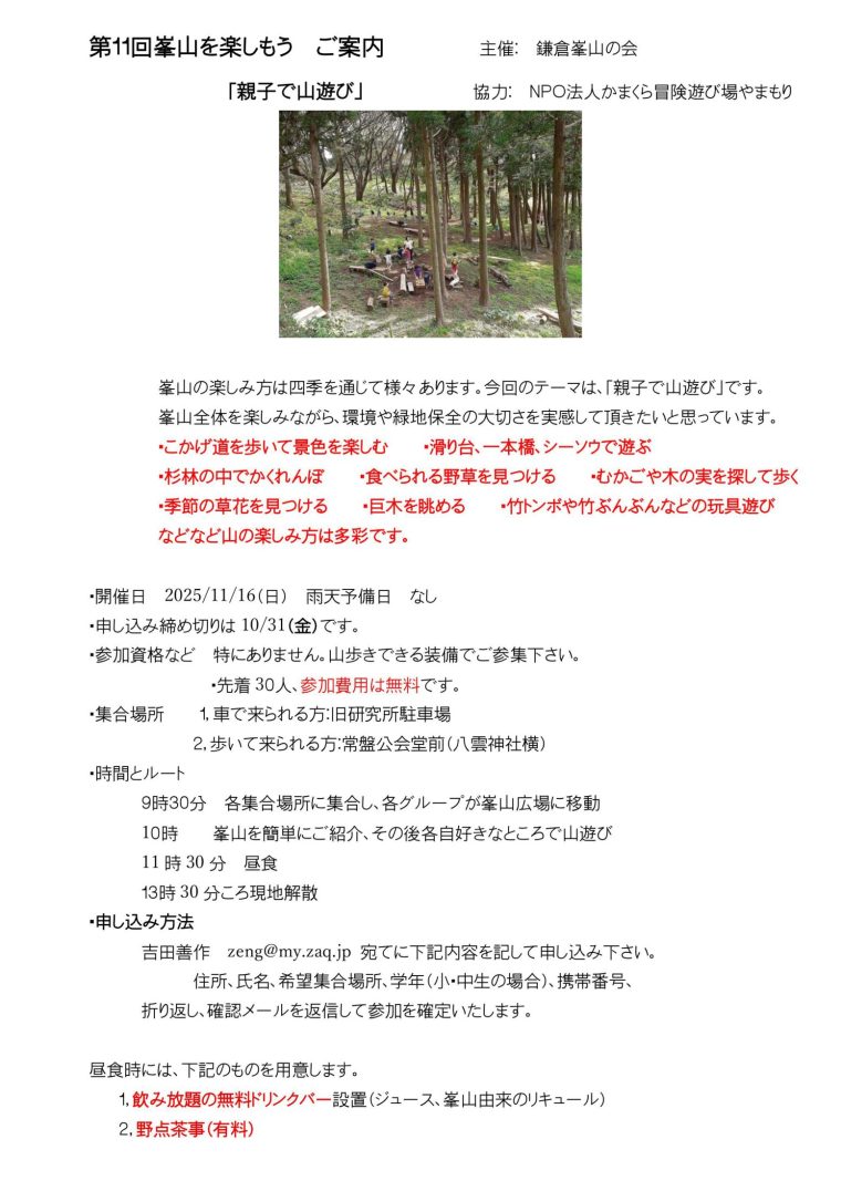いつも鎌倉峯山の会へのご協力感謝申し上げます。