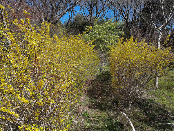 1,レンギョウとミツマタが満開となりました。(写真1⃣)